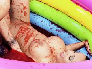 Blonde mit riesigen Titten wird von ihrer Freundin geleckt